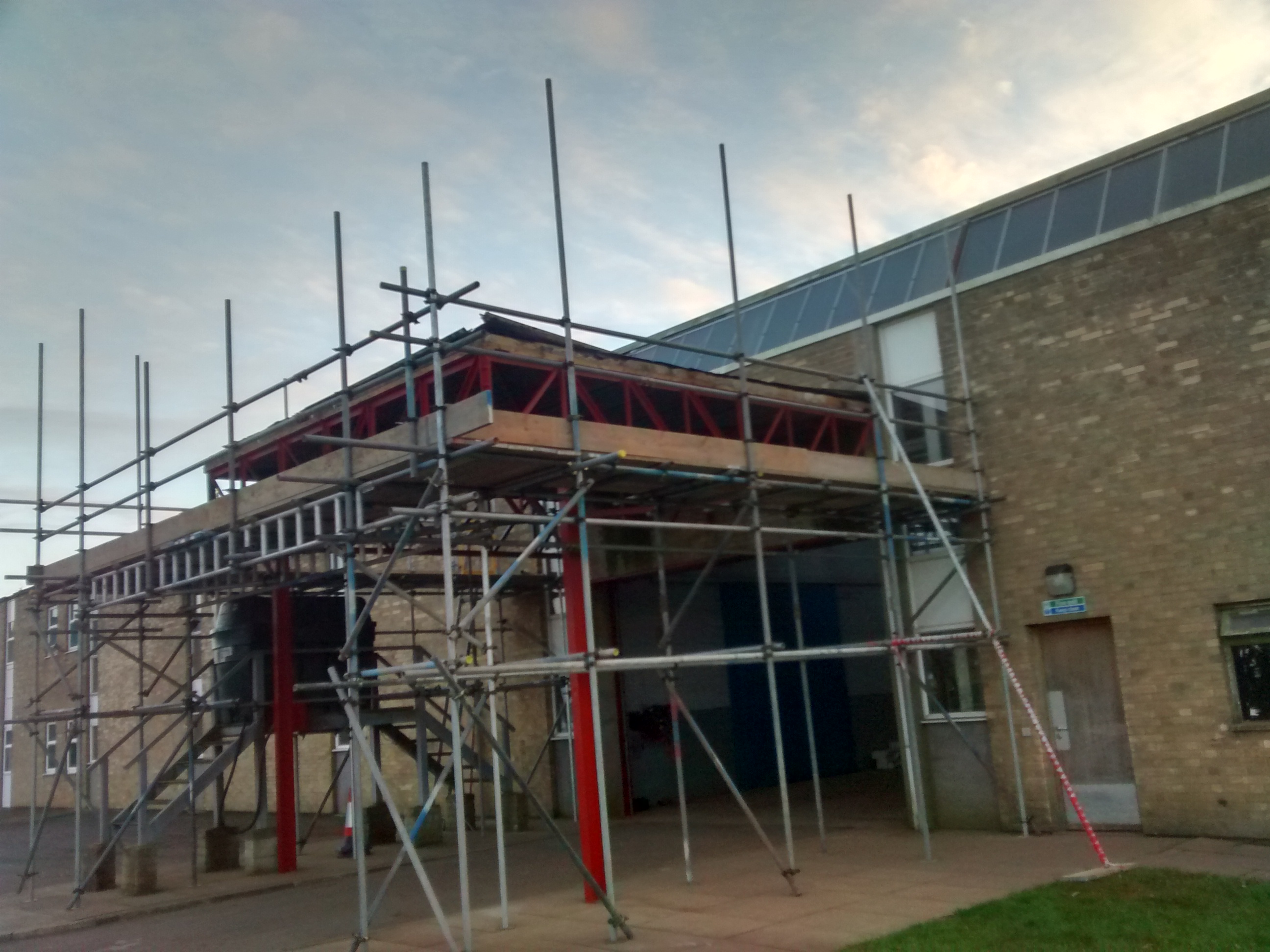 April 10, 2016 by Geoff and Dar Gail McNabb steel work still to be cleaned Sad old and leaky canopy ready for a make over! All the steel work cleaned primed and ready for painting. Scaffolding and new roof ready to go on. Shiny new canopy.